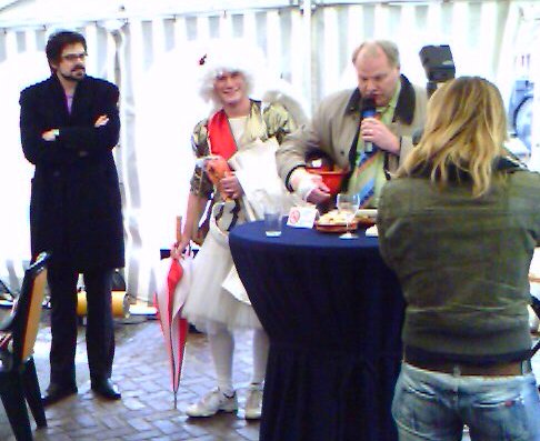 Op Valentijnsdag kon de start van de nieuwbouw aan het Ooievaarsplein in Hilversum natuurlijk alleen plaatsvinden met een echte Cupido. Hij schoot zijn pijlen op iedereen af waaronder wethouder Hammer. Levert natuurlijk een leuk plaatjes op via mijn mobieltje. Leuk gedaan, Martine!