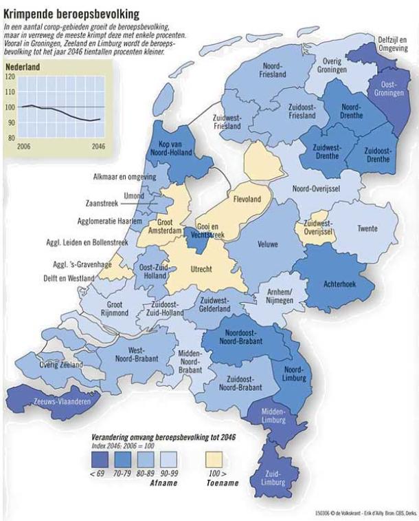 De bevolking van Nederland gaat krimpen. En dat geldt ook voor onze regio. Sommige politici grijpen dit aan om te pleiten voor een bouwstop. We moeten niet bouwen voor de leegstand, roepen ze dan. Klinkt logisch. Maar dat is het niet. Voor onze regio zien we dat die krimp optreedt door gezinsverdunning, niet omdat mensen hier niet willen wonen zoals in zuid Limburg en oost Groningen. Door die gezinsverdunning krimpt de beroepsbevolking in onze regio hard. En deze mensen hebben we nu juist zo hard nodig. Ze willen hier wel wonen, maar er zijn niet genoeg woningen. We moeten dus niet minder maar juist meer bouwen.