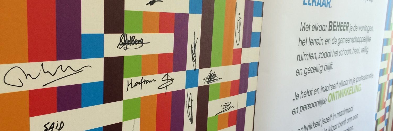 Het manifest ‘Building a future together’ op het Startblok Riekerhaven is door elke bewoner ondertekend.