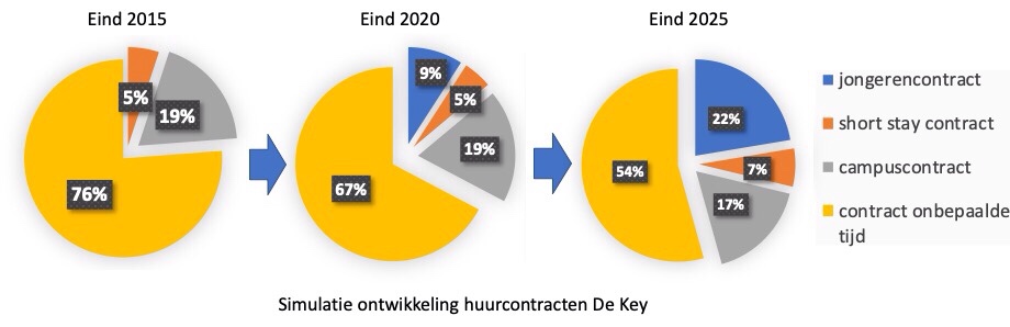 Niet iedereen is gelukkig met campus- en jongerencontracten. Dat is begrijpelijk, De Key maakt er liever ook geen gebruik van. Maar met de huidige woningschaarste is er geen keuze. Zonder dergelijke contracten komen jongeren pas na hun dertigste in aanmerking voor een woning. Dat wordt nu aanzienlijk vervroegd. En het grootste deel van de jongeren en studenten verlaat de woning al voordat de maximale huurtermijn is verlopen. Die zetten dan zelfstandig hun volgende stap op de woningmarkt.