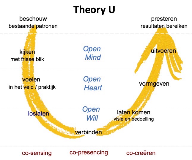 De Theory U is een procesmodel voor vernieuwing en transformatie van mens en organisatie. Met de U-theory ‘buig je complexe vraagstukken van deze tijd om naar een wezenlijke verandering, vanuit verbinding met jezelf, anderen en alle aspecten die met de vraag samenhangen’. Het U-proces maakt leren vanuit de toekomst mogelijk, in plaats van leren vanuit het verleden. Het U-proces ziet er als volgt uit: