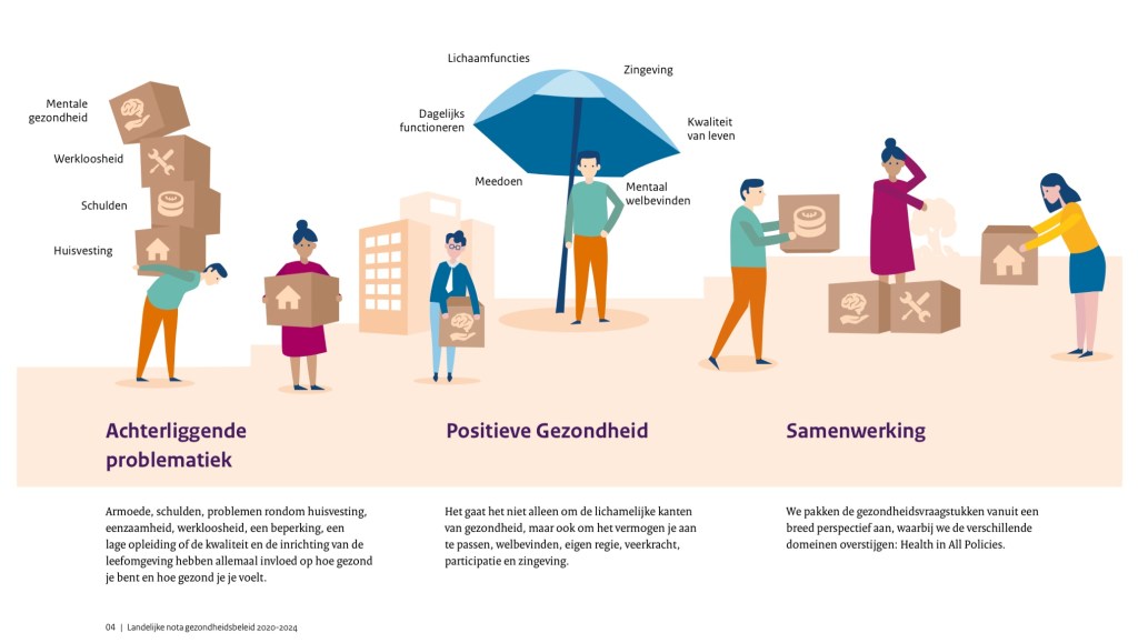 - Bij elke (beleids)interventie wordt gekeken hoe dit bijdraagt aan de gezondheid.