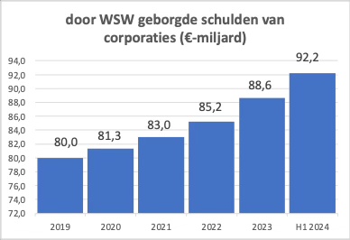 Een niet-sluitend huishoudboekje en 17.000 nieuwe woningen zorgen ervoor dat de schulden van corporaties in 2023 met € 3,4 miljard stegen naar € 88,6 miljard. Uit een recente halfjaarsrapportage van het WSW blijkt bovendien dat in de eerste helft van 2024 de schulden met nog eens € 3,6 miljard stegen naar € 92,2 miljard. Dat is een grotere stijging dan in heel 2023. Dat wijst op een opgaande lijn in investeringen. Eind 2023 bedroeg de rente op de totale corporatieschuld 2,67%. Dat betekent een jaarbetaling van ca € 2,4 miljard aan rente.