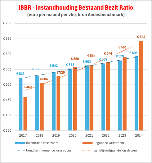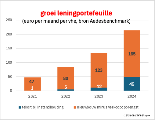 Nadat ik hierover deze week met Woonbond-directeur Zeno Winkels nog eens van gedachten wisselde, dook ik toch maar weer eens in de cijfers. Klopt dat frame van de Woonbond wel. De Aedesbenchmark laat zien dat het frame al jaren niet meer klopt. Sinds 2019 betalen huurders minder aan instandhouding van hun woningen dan wordt uitgegeven. Dat tekort steeg afgelopen jaar fors. Per maand is nu het tekort € 49. En één euro per woning betekent landelijk een jaarlijks tekort van ca € 27 miljoen. € 49 per maand is dus een landelijk tekort van jaarlijks 1,3 miljard!